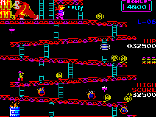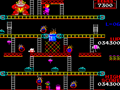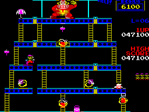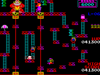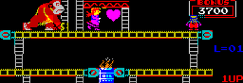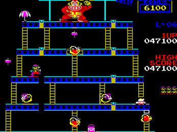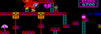 The player goes through four game stages, at the end of the fourth stage Pauline is rescued. Then the game switches to a higher difficulty level and the four stages are repeated. The game gradually becomes more difficult up to level 6. From level 7 onwards it remains as difficult as level 6.